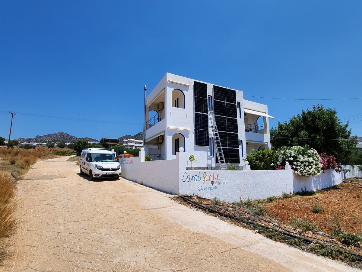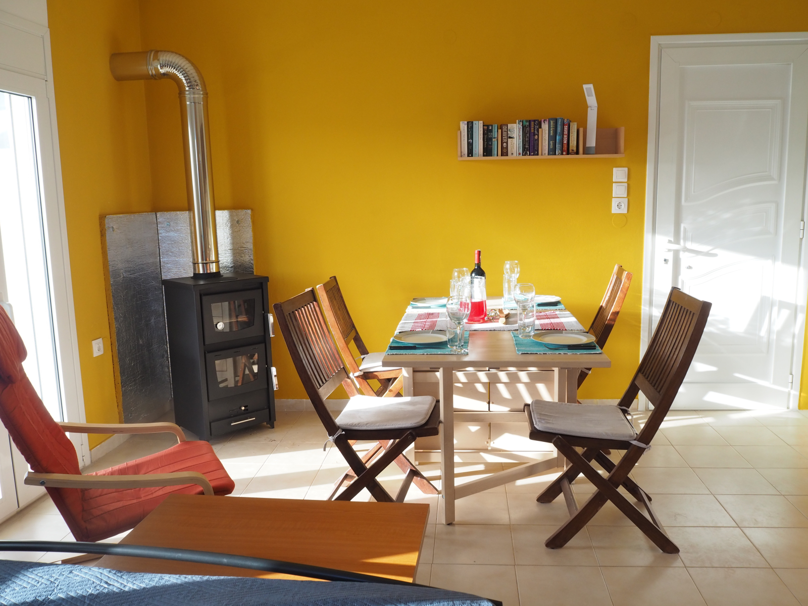 - Warum Öko? Das Haus wurde im Hinblick auf Energieeffizienz und Komfort isoliert (ist in Griechenland nicht üblich). Wir produzieren eigenen Solarstrom, haben Ökostrom aus Windenergie abonniert (Nachtstrom) und das Warmwasser wird mit einem Sonnenkollektor aufbereitet. Überall sind LED-Lampen installiert und die Klimageräte neuster Generation kühlen und heizen nach dem Prinzip einer Luft-Luft-Wärmepumpe. Das Apt. #1 kann im Winter gemütlich mit Holz geheizt werden. Langlebige Materialien werden bevorzugt. Der eigene Peugeot e208 wird tagsüber mit Solarstrom aufgeladen (und steht möglichweise für Exkursionen und Transfers zur Verfügung).