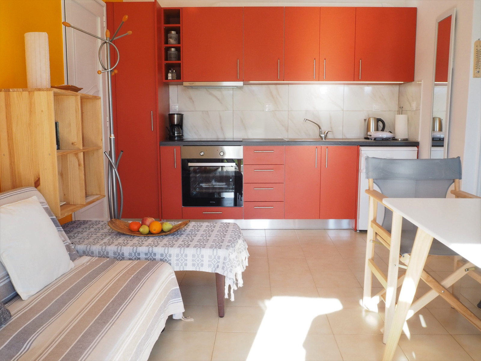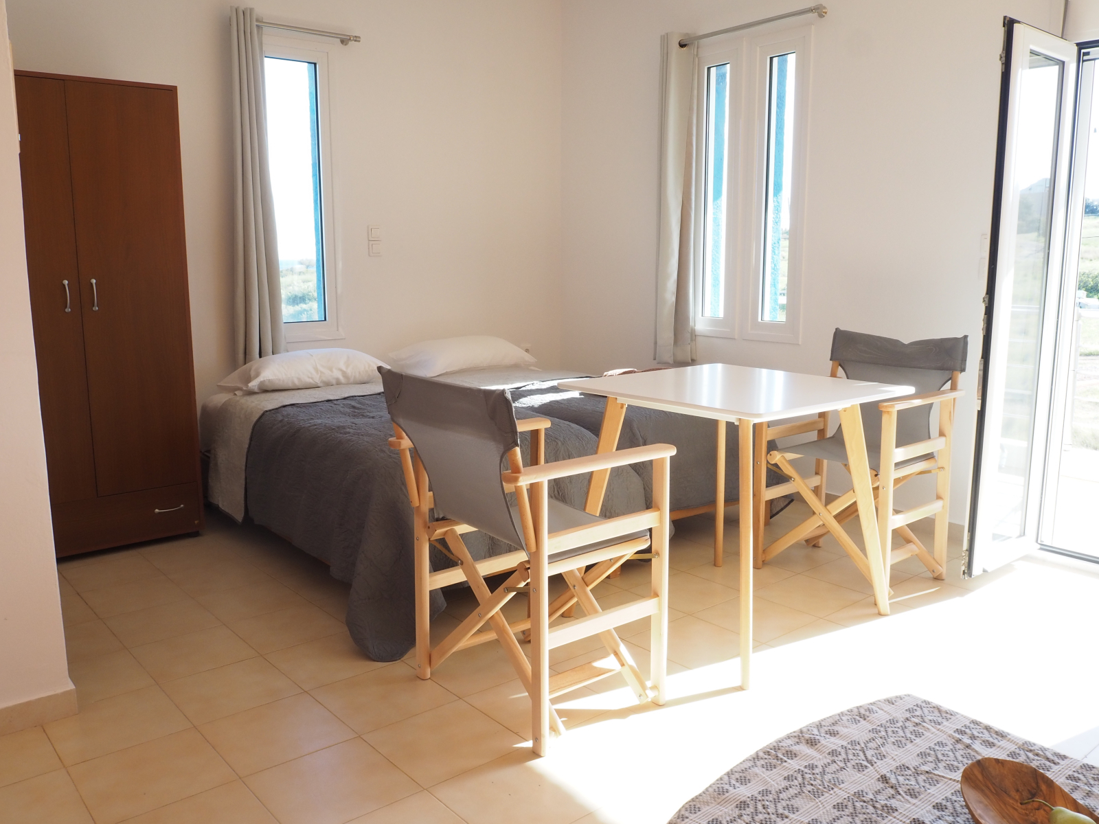 Um es gleich klarzustellen: Wenn du für dein Wohlbefinden immer den neusten Design-Standard von IKEA, eine geräumige Loft-Wohnung, einen Widescreen-TV und einen Swimmingpool brauchst, dann bist du bei mir – sorry – an der falschen Adresse. Gefällt dir hingegen das authentisch-ländliche Kreta, dann wird es dir sehr gut gefallen! Die zwei gut unterhaltenen Studio-Appartements bieten einen überdurchschnittlichen Standard, trotz eher kompakter Fläche (22 m2 innen + 8 m2 Balkon). Die Wohnungseinrichtung lässt sich als 80er-Jahre retro-chic charakterisieren, ergänzt mit neuen und nützlichen Elementen.
